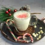 Rich and delicious homemade peppermint white hot chocolate recipe! A perfect warm beverage for the festive holiday season!