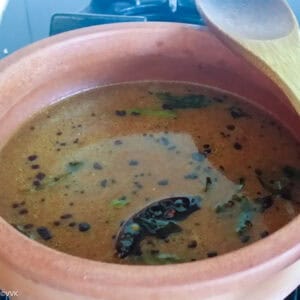 Mix rice flour with ½ cup of water (if you want a thick consistency, make a thick paste by reducing water) and add it to the kuzhambu.
