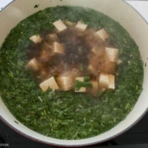 After 10 minutes, remove the lid and add the tofu cubes and lemon zest. Mix well and cover, and cook again for 5 minutes over medium heat.
