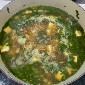 Place the noodle cake into the soup and let it cook for 2 minutes.