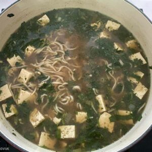 Then gently break the noodles. Simmer the soup until the noodles are soft (3 to 4 minutes).