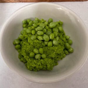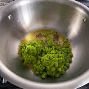 Pulse it coarsely without adding any water and set it aside in a bowl along with the remaining ¼ cup of peas.