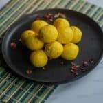 If using nuts, garnish it with the nuts and enjoy. I simply garnished the laddu with saffron strands.