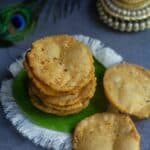 After pressing, smooth the edges and prick the Thattai with a fork to prevent it from puffing up during frying.