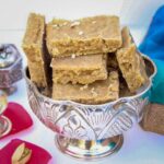 For this Diwali, my mantra is to keep everything simple. I want to try the recipes that I can prepare in less than 30 to 45 minutes. And this seven-cup cake is one such recipe. Barfi is nothing Indian fudge prepared with either milk powder or cashew flour/kaju katli or besan. Check out my milk powder burfi recipe too.