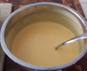 - Mix the puree, yogurt, evaporated milk, sugar, condensed milk and cardamom powder.
