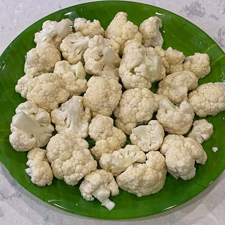 Cauliflower: I used one cauliflower head, which was approx 460 grams. Just cut into big florets.