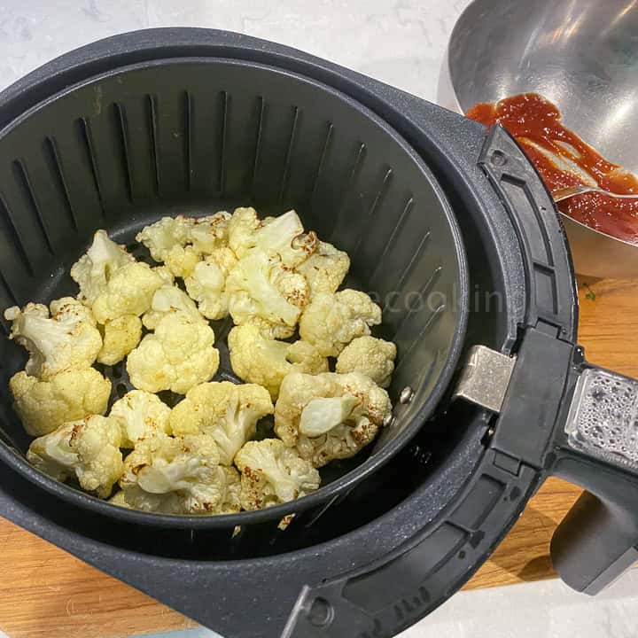 Alternatively, you can coat the cauliflower florets with the sauce and air fry also. Do give it a try. Cooking is all about experimenting and find the right flavor that you like. I am sharing the version that we liked.