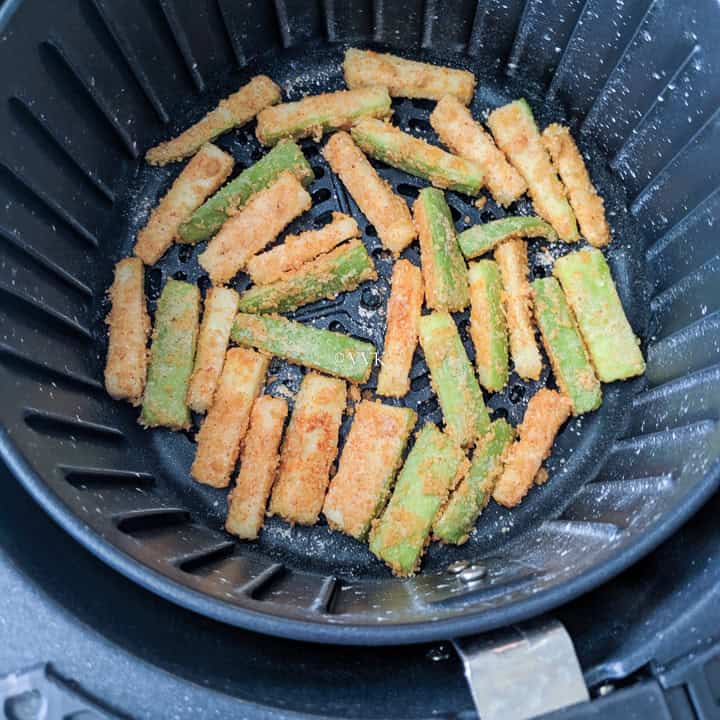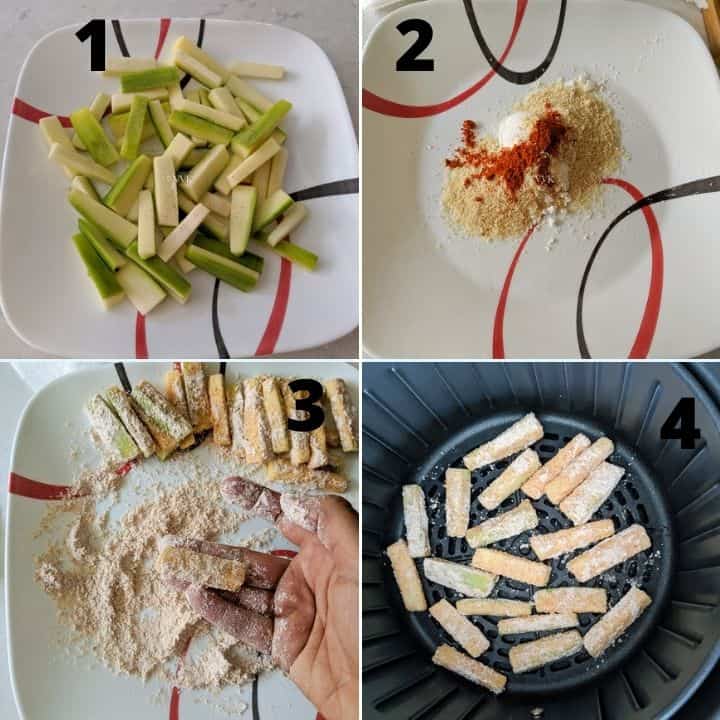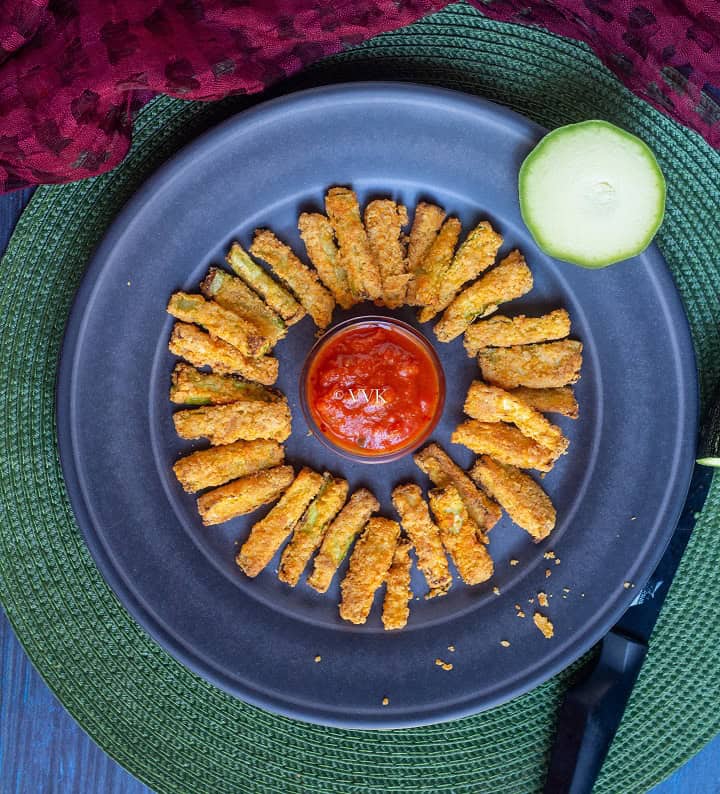Crispy, healthy, gluten-free, and eggless zucchini fries made in air-fryer. This zucchini fries with minimal ingredients, and oil is a guilt-free munch for sure!