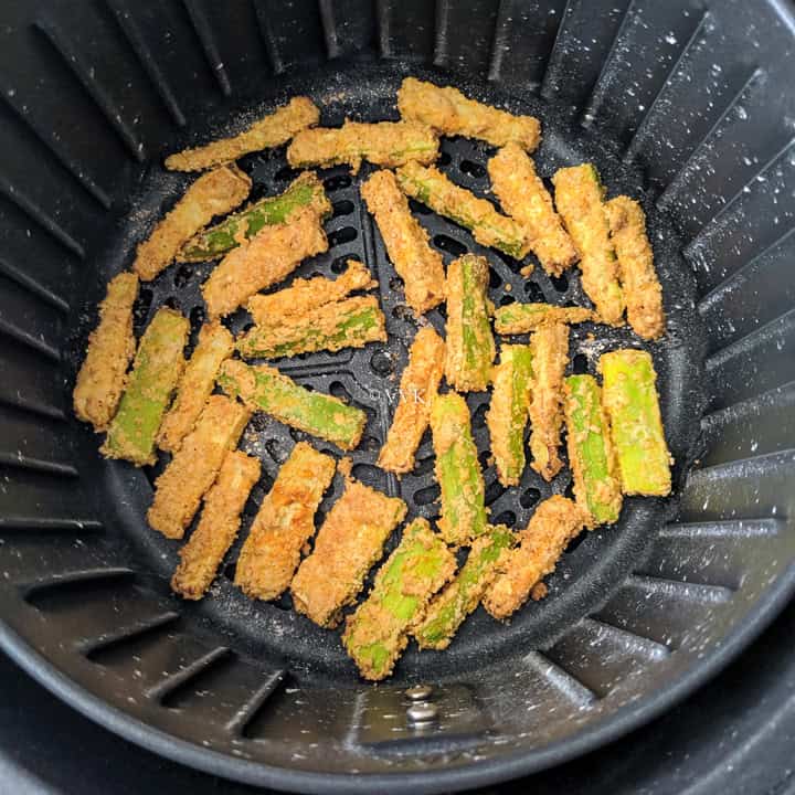 - Adjust the salt and the spice according to your preference. Do not overcrowd your air fryer. Leave some space for even frying.