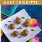 A simple gluten-free no-cook rice flour laddu popularly known as akki tambittu or akki unde in Kannada that we make for all the festivals! Here is the akki tambittu recipe with store-bought rice flour.
