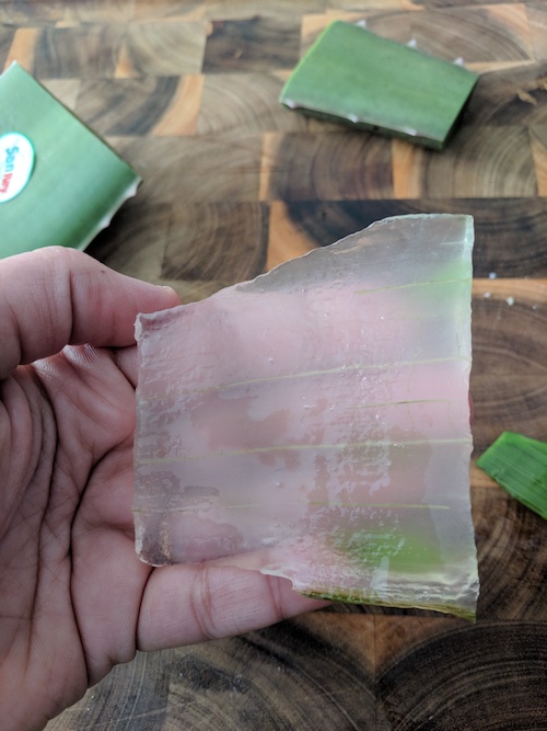 I had no clue how to cut aloe vera and which part to use even. As usual Lord, the Google helped me, and I was so amazed seeing the other medicinal benefits of aloe. The Natural Healers website gave me a lot of insights about aloe and this YouTube video taught me how to cut the aloe.