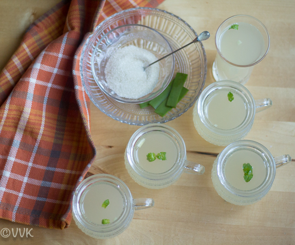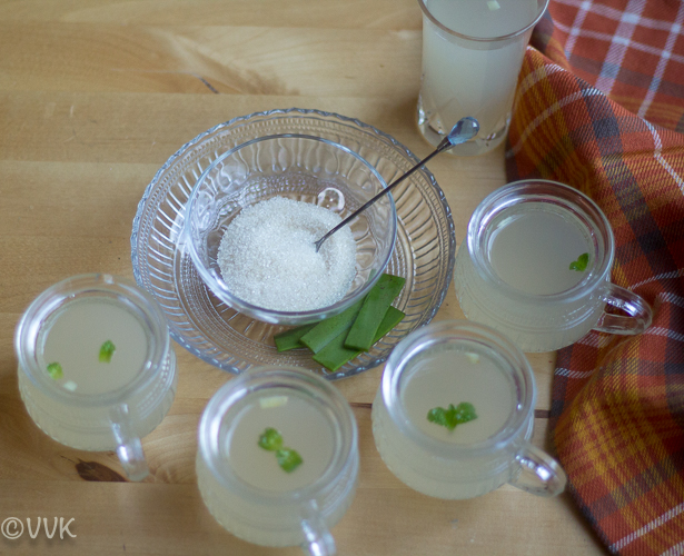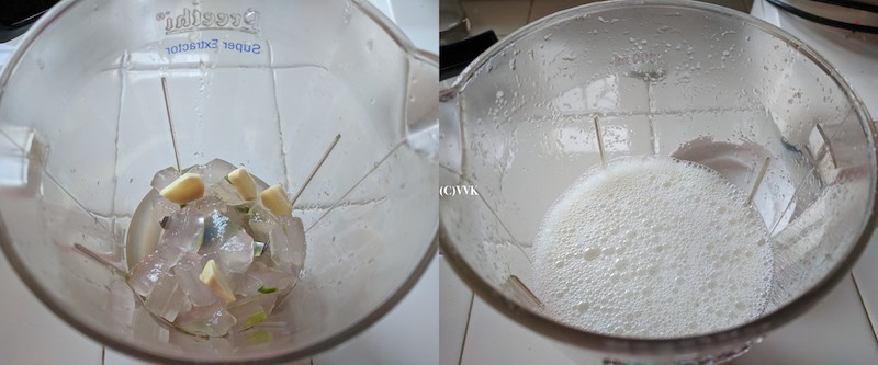 I know the internet is brimming with a lot of aloe juice recipes, but I thought sharing what I tried. :-) Without any further delay, here is my aloe vera juice recipe.