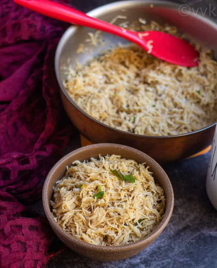 I took the time to post thengai aval or aval upma, rava khichdi, and semiya khichdi, but I completely forgot about posting the simple and basic version for semiya upma. And here I am to amend that. Sometimes I miss posting the comforting and easy recipes here in this space. And this semiya upma is one such recipe.