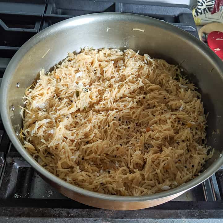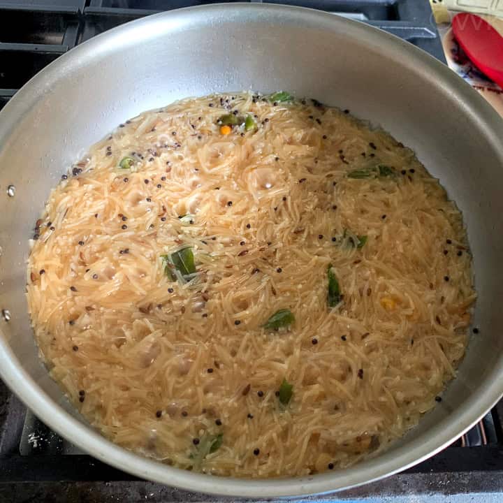 - Add roasted semiya and let it cook until the moisture is all absorbed.