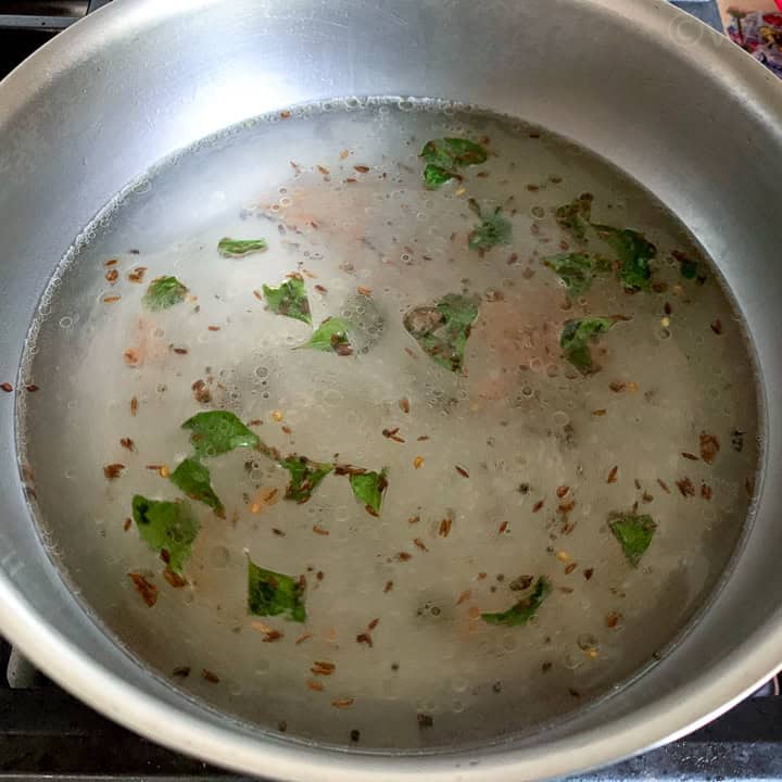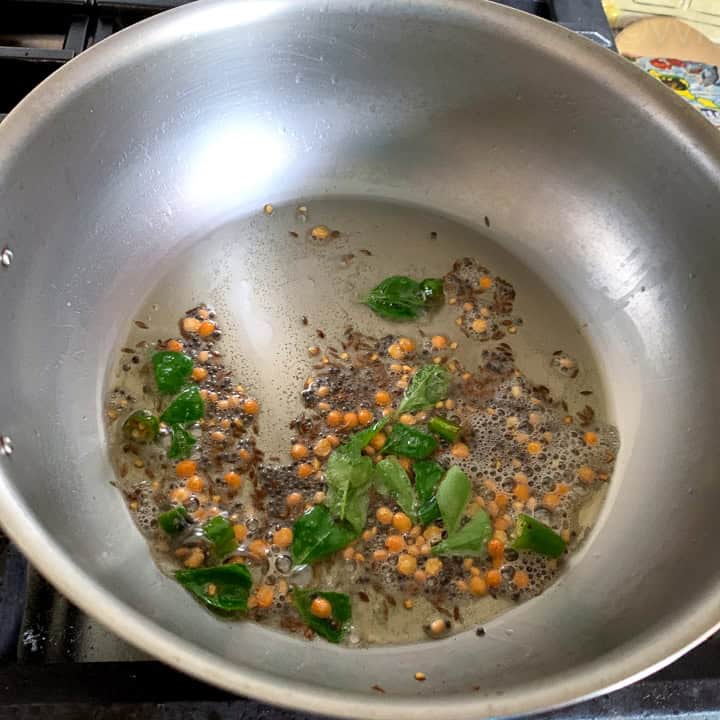 Tempering- I went with ghee for tempering and used mustard seeds, cumin seeds, urad dal, and chana dal. But you can use oil of your choice and keep it vegan. Also, you can temper with mustard seeds or mustard seeds + cumin seeds or mustard seeds + urad dal + chana dal. Either one option is ok. And chana dal is entirely optional.
