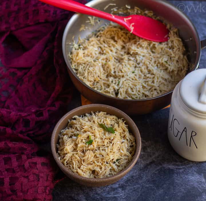 Semiya is the Tamil name for vermicelli. Think semiya or vermicelli as Indian spaghetti but comparatively thinner than the spaghetti. It’s also wheat/maida product, so it’s not gluten-friendly. But these days you can find millet-based vermicellis. I am using the regular roasted semiya for this recipe.