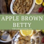 You can bake this brown betty in a baking pan or in a casserole dish. I usually bake this in my Corningware 2.5 oval baking dish. It’s easy for me to carry to the parties and potlucks.