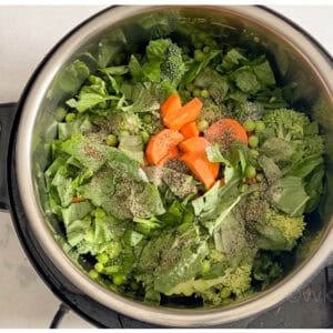 It’s just a handful of ingredients that we need to dump into the Instant Pot and let the Instant Pot do its magic. Then we need to puree the veggies and simmer for a couple of minutes. That’s it.