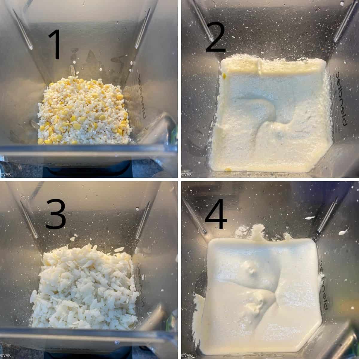- (Pic 2) Grind it into a smooth batter by adding water as required. I added ¼ cup + 2 tbsp of water for this batch and used my smoothie setting to grind the batter. I ground it only for 40 seconds.