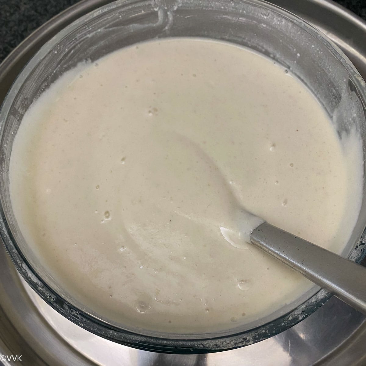 - Mix the batter well, and it should be in pouring consistency. If needed, add ¼ cup of water. I did add a little water.
