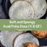 My soft and spongy aval dosai/poha dosa recipe without any yogurt or buttermilk! Check out the easy-to-make and naturally vegan aval dosa recipe with detailed step-wise pictures.