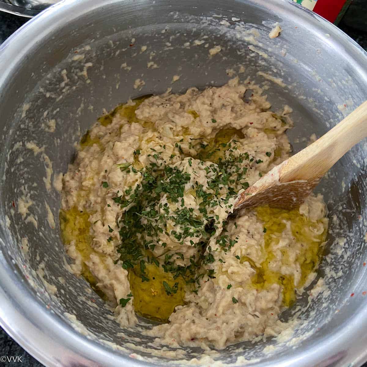 - Next, mix the 1.5 tbsp of olive oil and dried parsley. Mix it vigorously to get a creamy texture.