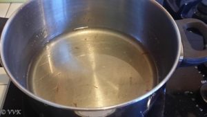 - Heat the oil for frying in a pan and make sure it is in low heat. (I have number setting and kept it between 3 and 4)