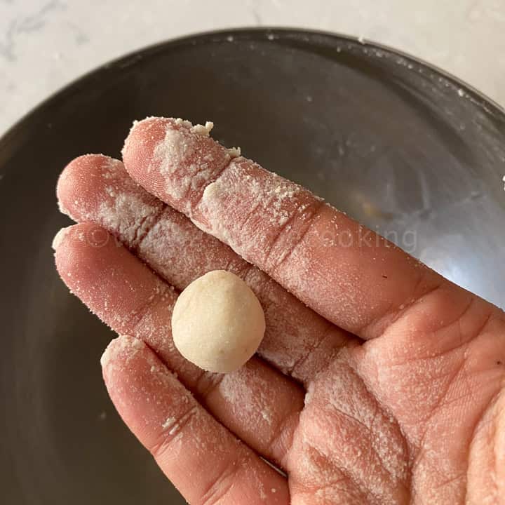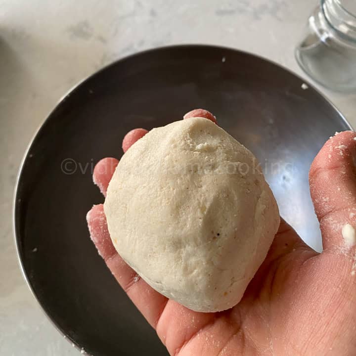 - Do not add all the coconut milk at once. Add little by little and knead the dough.
