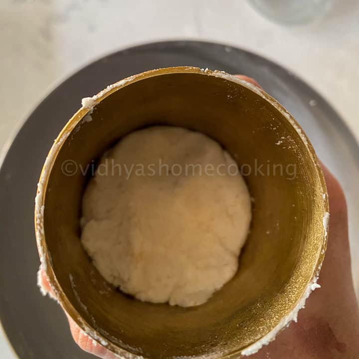 - Then add the dough in the murukku press. I was able to add the entire dough into the press.