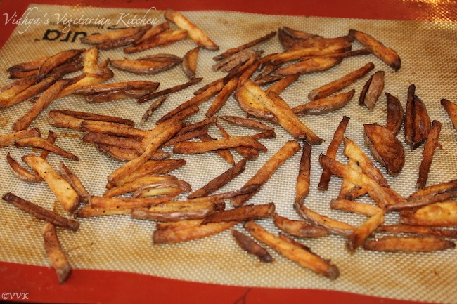 Also, I wanted to try very crispy matchstick fries like hers. I hope I got it I think. You guys got to say. :-) I went with red potatoes, but you can go with any potato variety you have in hand. Without any delay here is the baked fries recipe,