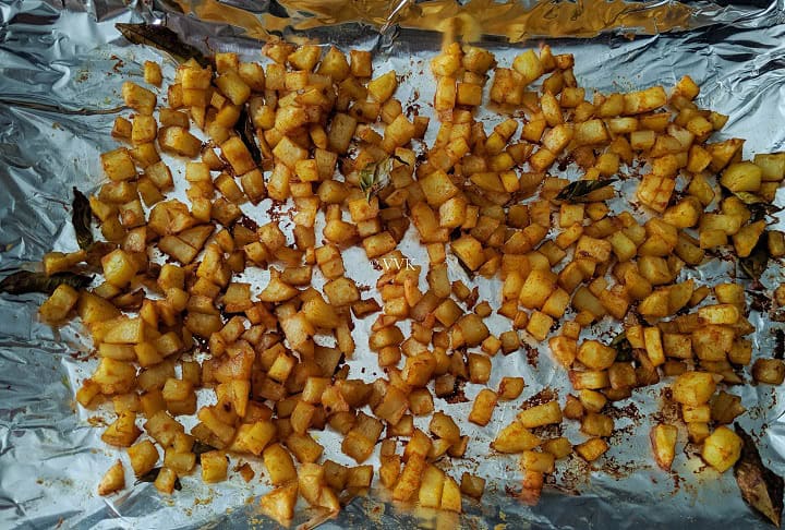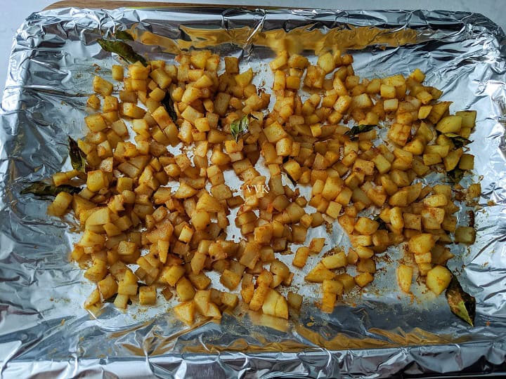 I love curry leaves, and I bake it along with the potatoes, and it’s super delicious to relish the crispy curry leaves. But if you can’t source it, please ignore it, and there is no exact replacement for curry leaves. I did the tempering separately, but that’s completely optional.