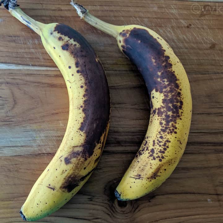 - Use soft and mushy ripe to overripe bananas. The bananas with the black spots are the perfect ones for this. This is what I used this time.