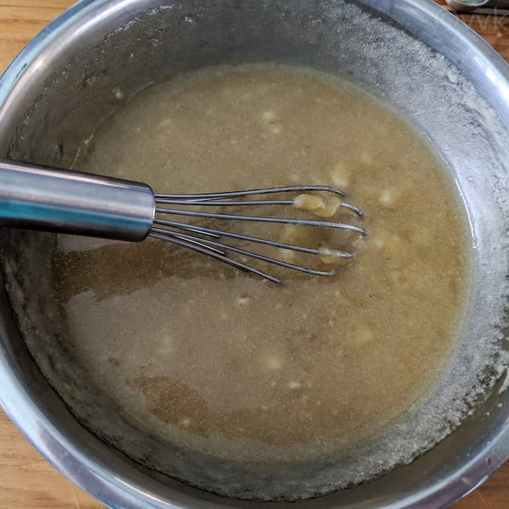 - Gently mix. Just mix until you don’t see any dry flour. Do not overmix.