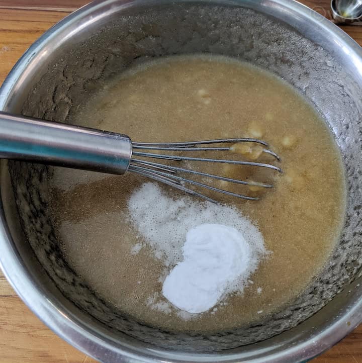 - Now comes the fun part – most recipes call for adding the baking powder and baking soda along with the dry ingredients. But I add them to my wet ingredients and then add the flour. It has always worked for me, and it yields a soft and moist bread.