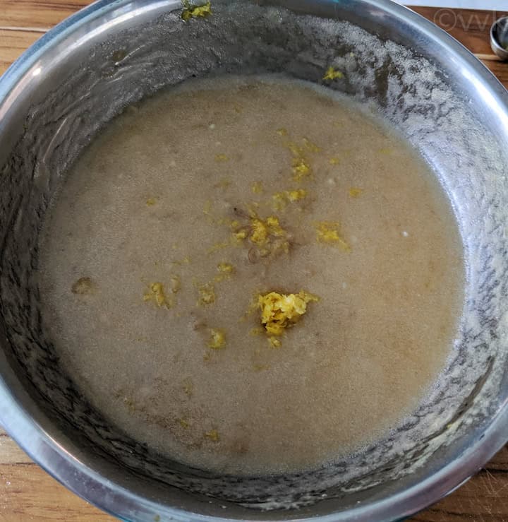 I started my eggless baking journey with this simple eggless banana bread. I love the banana walnut bread in Starbucks, and I wanted to try similar bread at home. And precisely that’s when I came across the banana bread recipe on food network. Of course, I made it without eggs and kept it vegan as well. I liked the idea of adding citrus zest in the banana bread. So I started adding them regularly. But that’s completely optional. I have tried this recipe without lemon zest also.