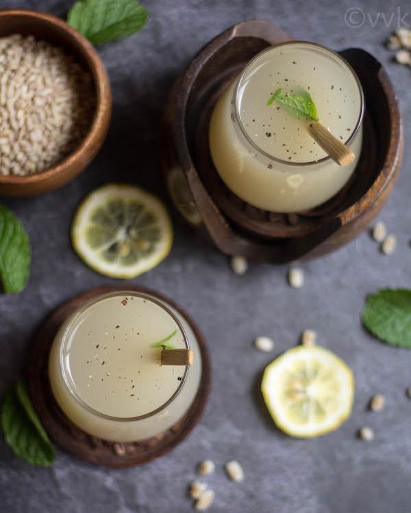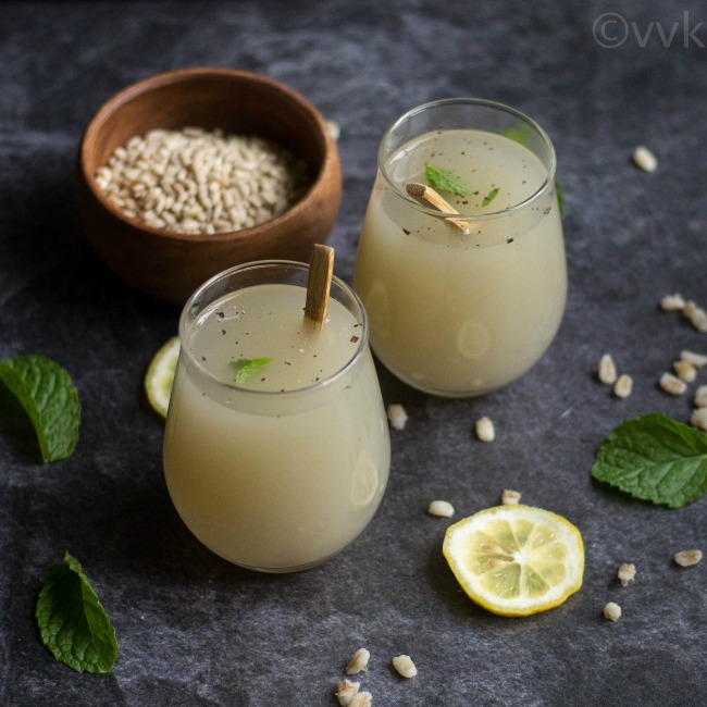I am sure you will like my Indian style spicy lemonade, Limonana (Mint Lemonade) Recipe, limeade with basil seeds, rose sharbat, nannari sarbath and of course the humble buttermilk. I am so happy to add the barley lemonade to that lot as well.