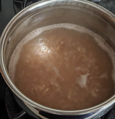 - Simmer it over medium heat for 30 minutes or until the liquid reduces to half in quantity.