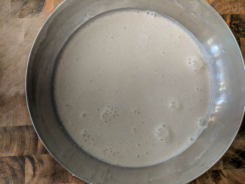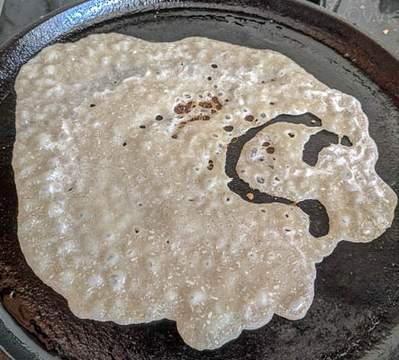 - Heat the dosa pan. I used my cast iron tawa. Ensure it is seasoned well.