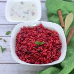 As a part of the Indian Vegetarian Meal Plan Series, I started sharing the variety rice/lunch box recipes from last week both here on my blog and on my YouTube channel. Last week I shared potato-capsicum rice and this week it is the beetroot rice or beets pulav. PS: If you haven’t subscribed to my channel, please do subscribe and stay tuned for the new video every Friday.