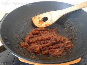 - Mix the grated pumpkin and jaggery and cook it in a nonstick pan until the jaggery is melted and pumpkin cooked. It doesn’t take more than 4-5 minutes. Don’t over cook so as to prevent jaggery from getting burnt.