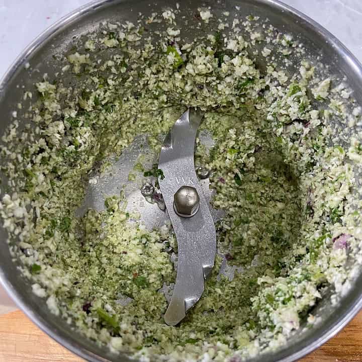 - Grind all the ingredients, including salt, into a coarse paste in a mixer jar or a coffee grinder.