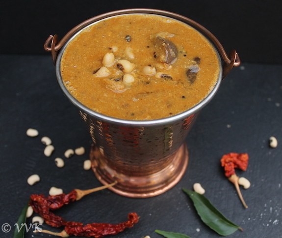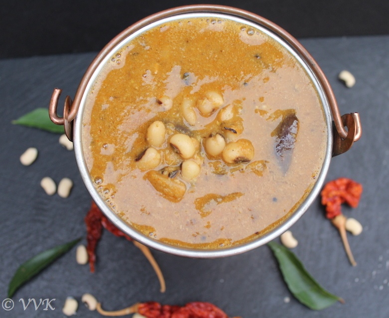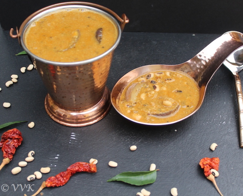 - That’s it. Yummy brinjal black-eyed peas kuzhambu is ready.