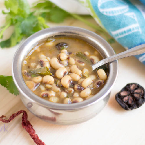 The one that I shared on my Instagram is with garbanzo beans, but today I am sharing it with black-eyed peas. That’s the highlight of these sundal recipes. You can use any bean/legume of your choice and make a delicious sundal. By the way, this black-eyed peas sundal is popularly known as karamani sundal or thatta payaru sundal in Tamil.