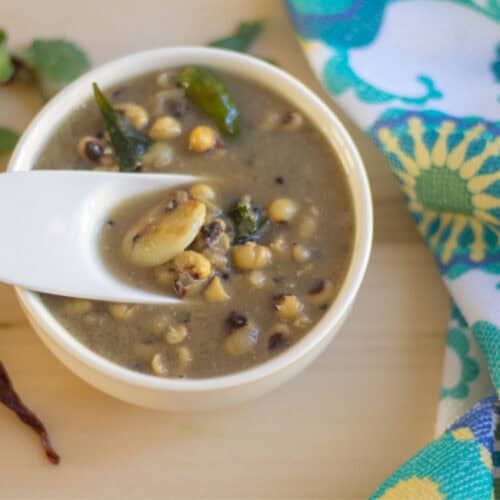 Then you are in the right place. I have an exciting sundal recipe with black-eyed peas. What makes this sundal interesting? It’s the freshly ground herbs and coconut paste.
