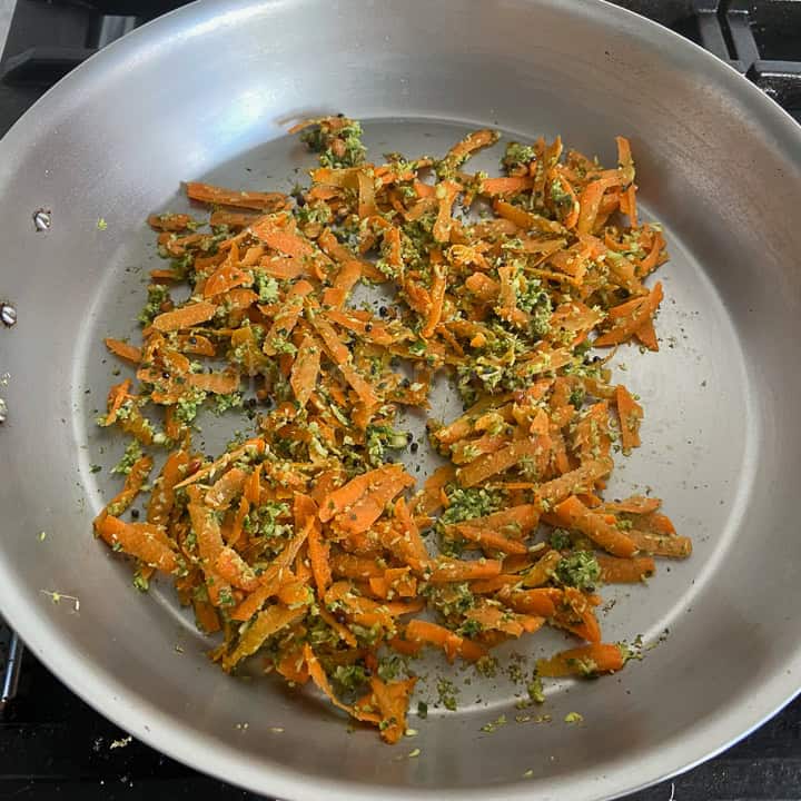 - We don’t need to cook the grated carrots until they are soft. The partially cooked carrots add some crunchiness to this salad.