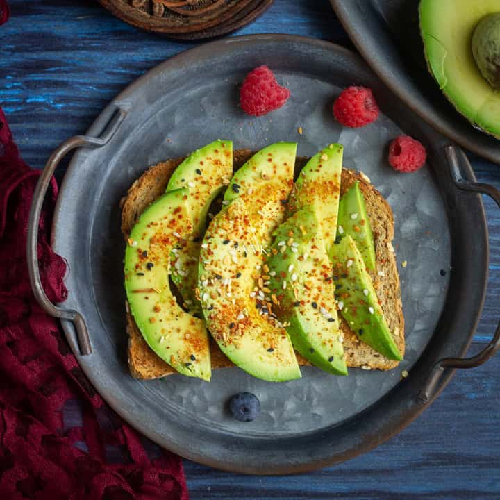 For this toast, if I have hummus, I always smear 1 tbsp of hummus and add ½ of sliced avocados. I then sprinkle paprika or chile-lime seasoning and Everything but bagel seasoning on top. I have tried this toast without hummus also.