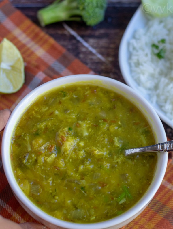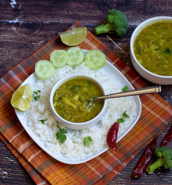 I love to sneak in vegetables in my dal or the lentils. I have a few recipes like sobji dal (mixed vegetable lentils), yellow cucumber dal, tender jackfruit dal on my blog already. Now I am adding this broccoli dal to my recipe repertoire.