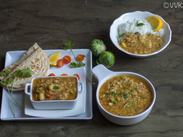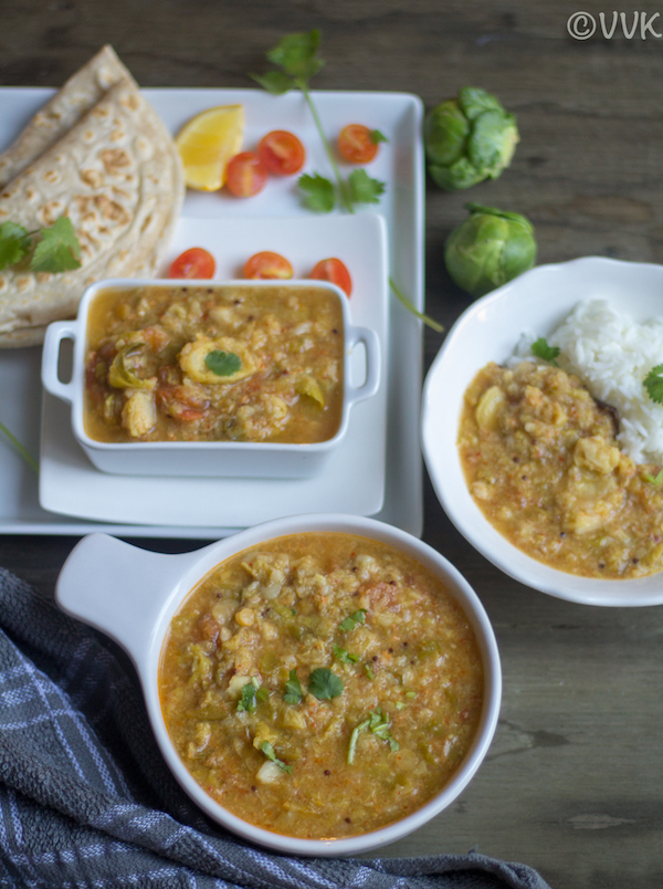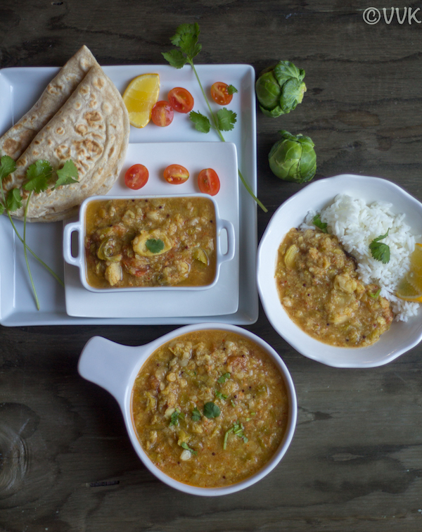 Never thought of adding brussels sprouts in kootu but it looks fabulous. I usually make a stir fry with these tiny cute veggies. The addition of cardamom and cinnamon must give it some amazing flavour.