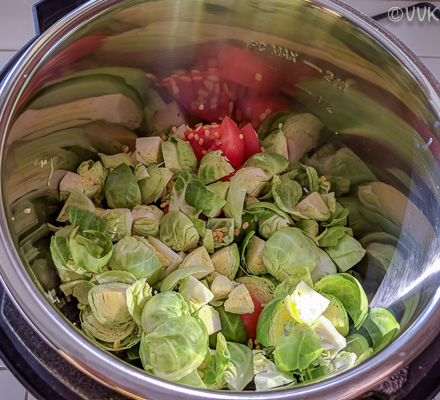 Now without any further ado, here is how I made the brussels sprouts masala kootu in my Instant Pot.